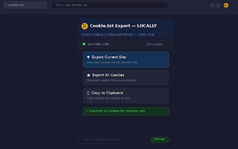 OS-kraven för Cookie.txt Export — LOCALT är inte tillgängliga för tillfället. Den aktuella versionen av programmet är 1.0.0, och du kan köra det endast på engelska.